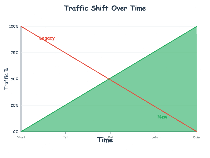Using the Strangler Pattern, they first introduce an API gateway that sits in front of the existing checkout service. They build a new payment service with modern architecture, comprehensive testing, and support for contemporary payment methods. The gateway routes a small percentage of checkout requests to the new service—perhaps starting with internal employee purchases. As confidence grows, the percentage increases until eventually all traffic flows through the new implementation.